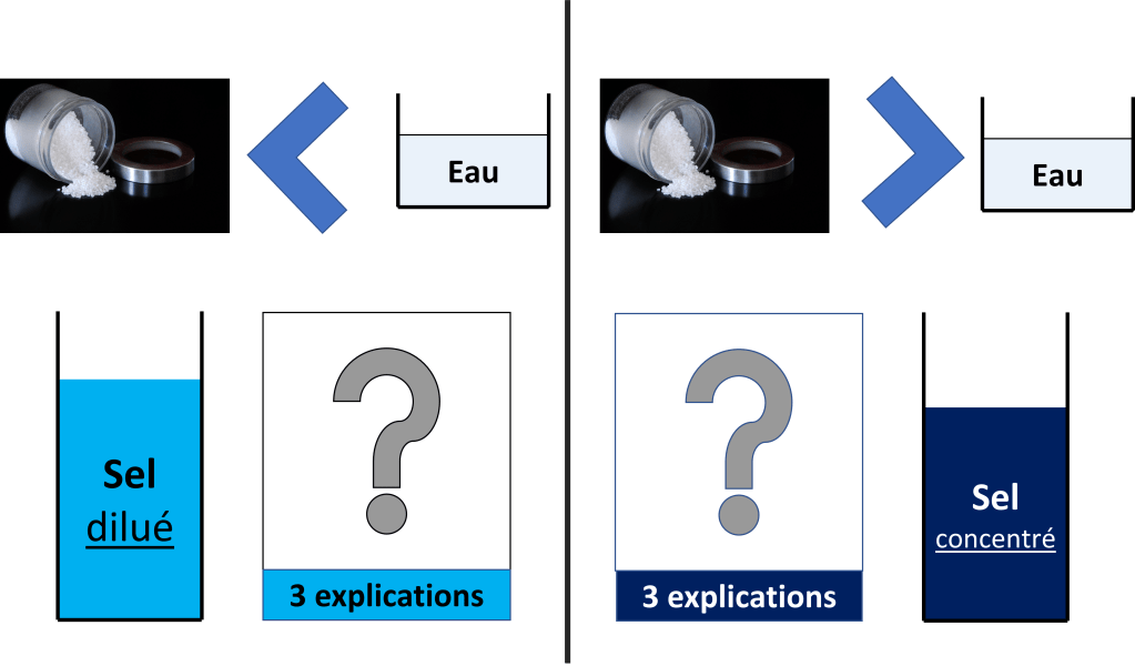 Dans les 3 cas la quantité de sel est différente : Pas assez de sel, sel normal ou trop de sel