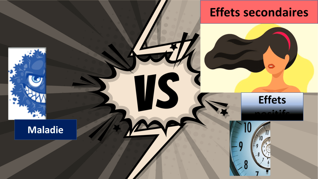 Les effets secondaires, c’est l’effet négatif d’un traitement que l’on accepte du fait du bien que le traitement va procurer au patient.