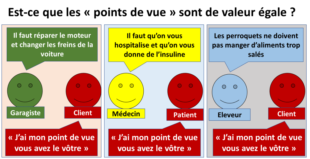 Après que nos patients aient énoncé leurs arguments et entendu notre réponse, certains jouent la carte du « Chacun son point de vue« .