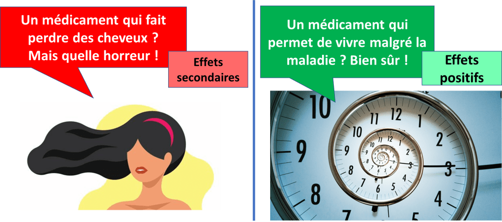 Traiter un patient, c’est échanger les effets secondaires de traitements contre l’amélioration ou la guérison d’une maladie.