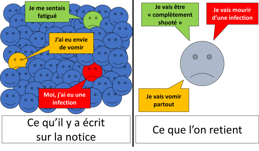 Le patient peut voir en plus gros les effets secondaires et seulement voir une partie des bénéfices du traitement ou de la réalité de la maladie. On peut alors comprendre son refus.