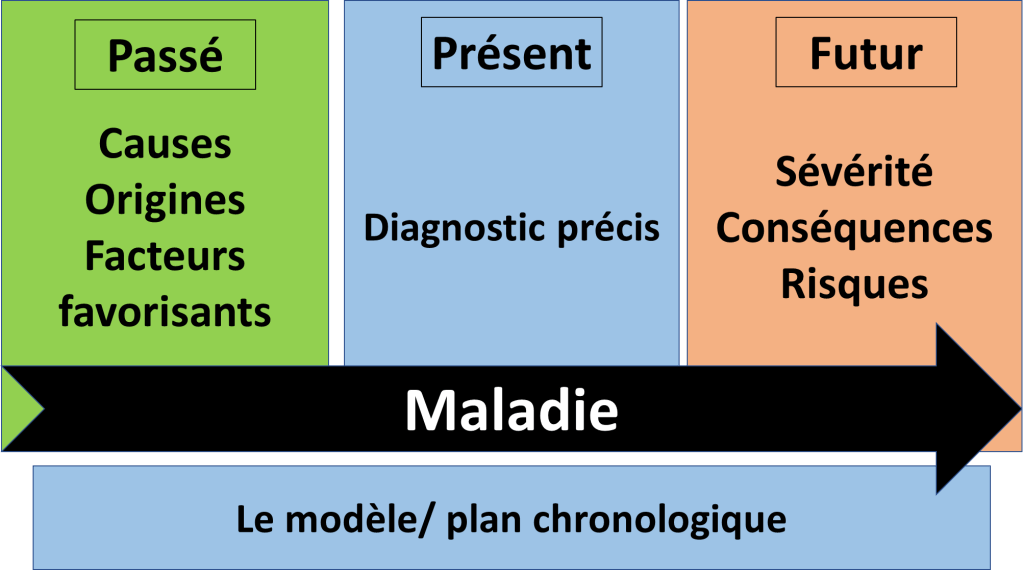 Le modèle chronologique permet simplement d’avoir une carte large et de vite voir les enjeux d’une maladie.