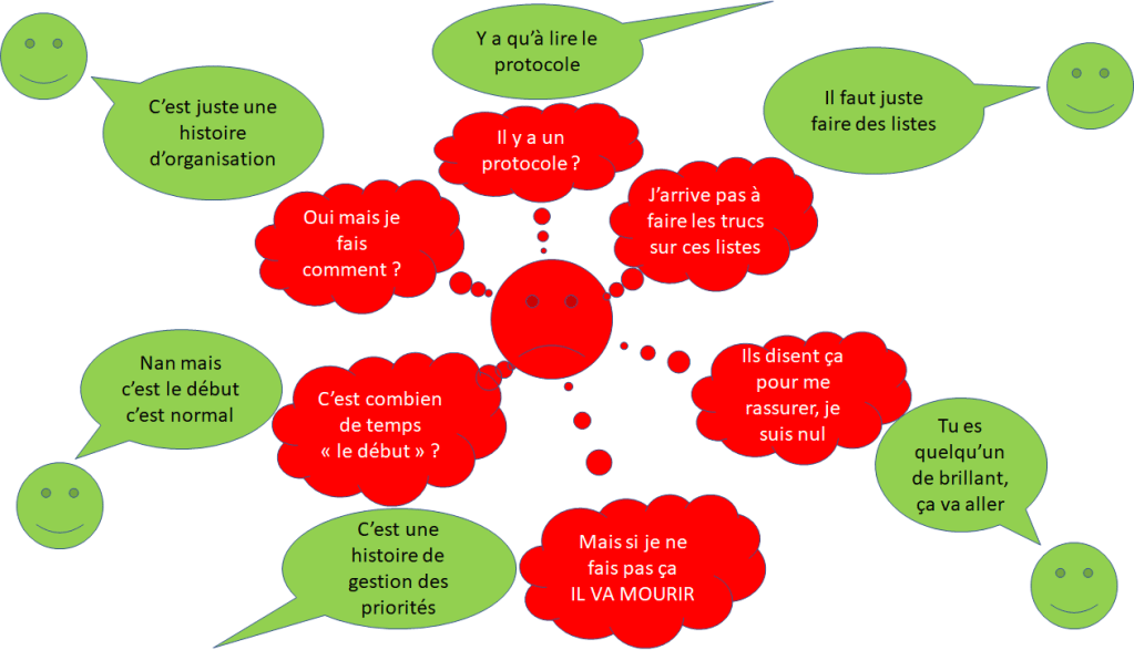 Dans les périodes de transition (les « nouveaux endroits », les « nouvelles activités ») il est judicieux d’avoir un environnement bienveillant qui permettra de ne pas être surchargé en émotions qui diminuent confiance en soi.